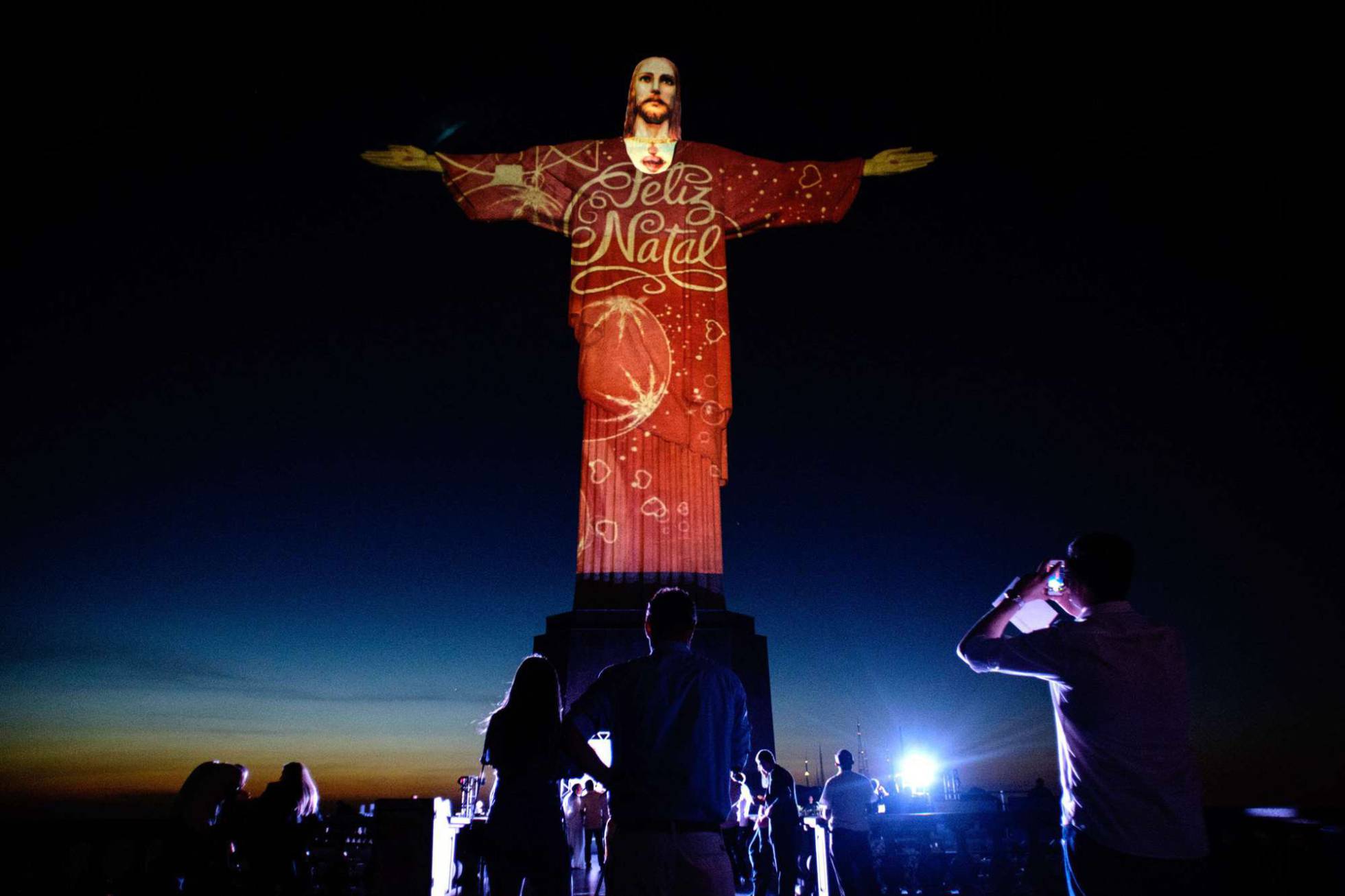 Iluminação do Cristo Redentor especial para o Natal, no Rio, no dia 23.  AFP